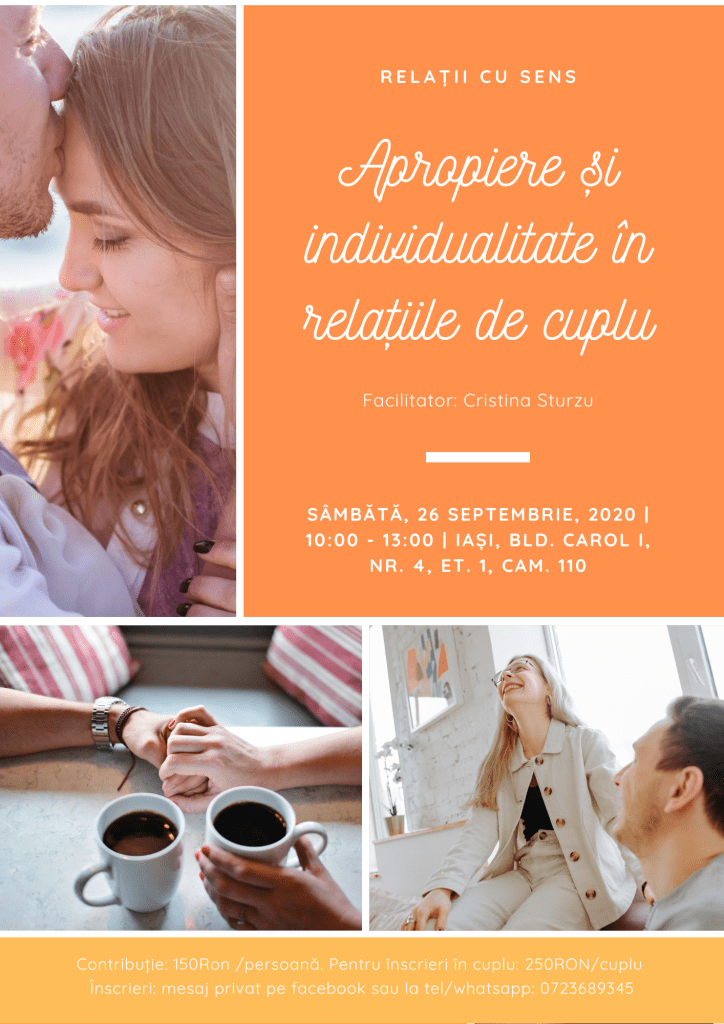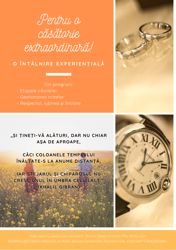 Facilitator: Cristina Sturzu, Consilier pentru dezvoltare personală individuală, de cuplu și familie
