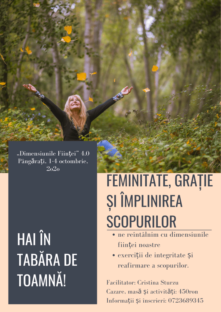 În această toamnă vă lansez o nouă invitație la tabăra retreat „Feminitate, grație și împlinirea scopurilor”