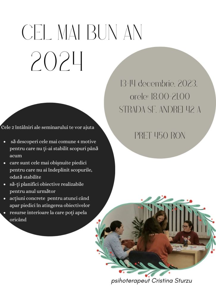 - Cu cine? Psihoterapeut Cristina Sturzu & alți 11 participanți la fel de dornici ca și tine de a se lansa către anul 2024!