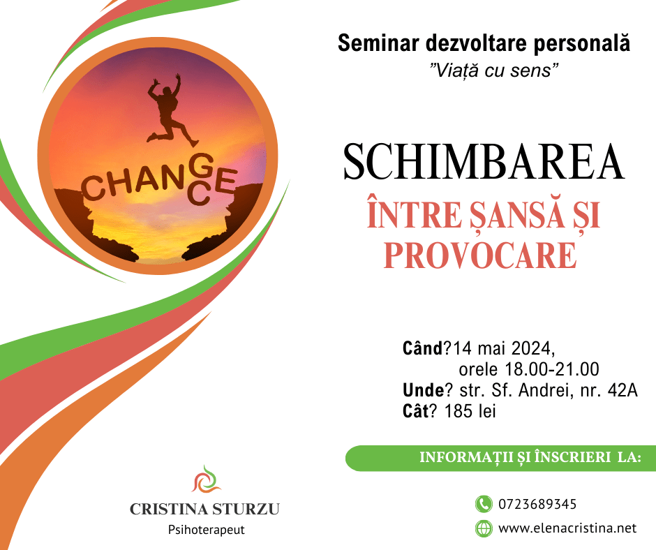 Aceasta e o invitație pe care ți-o lansez: să vii alături de mine, la seminarul despre schimbare, să explorăm împreună.